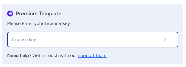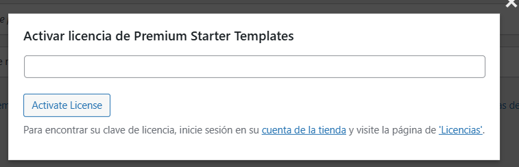 Al querer usar cualquier plantilla de las premium en Premium Starter Templates me pide que ponga el código de licencia