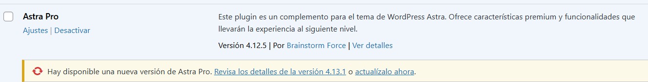 Necesito la actualización del plugin Astra pro a su version 4.13.2
