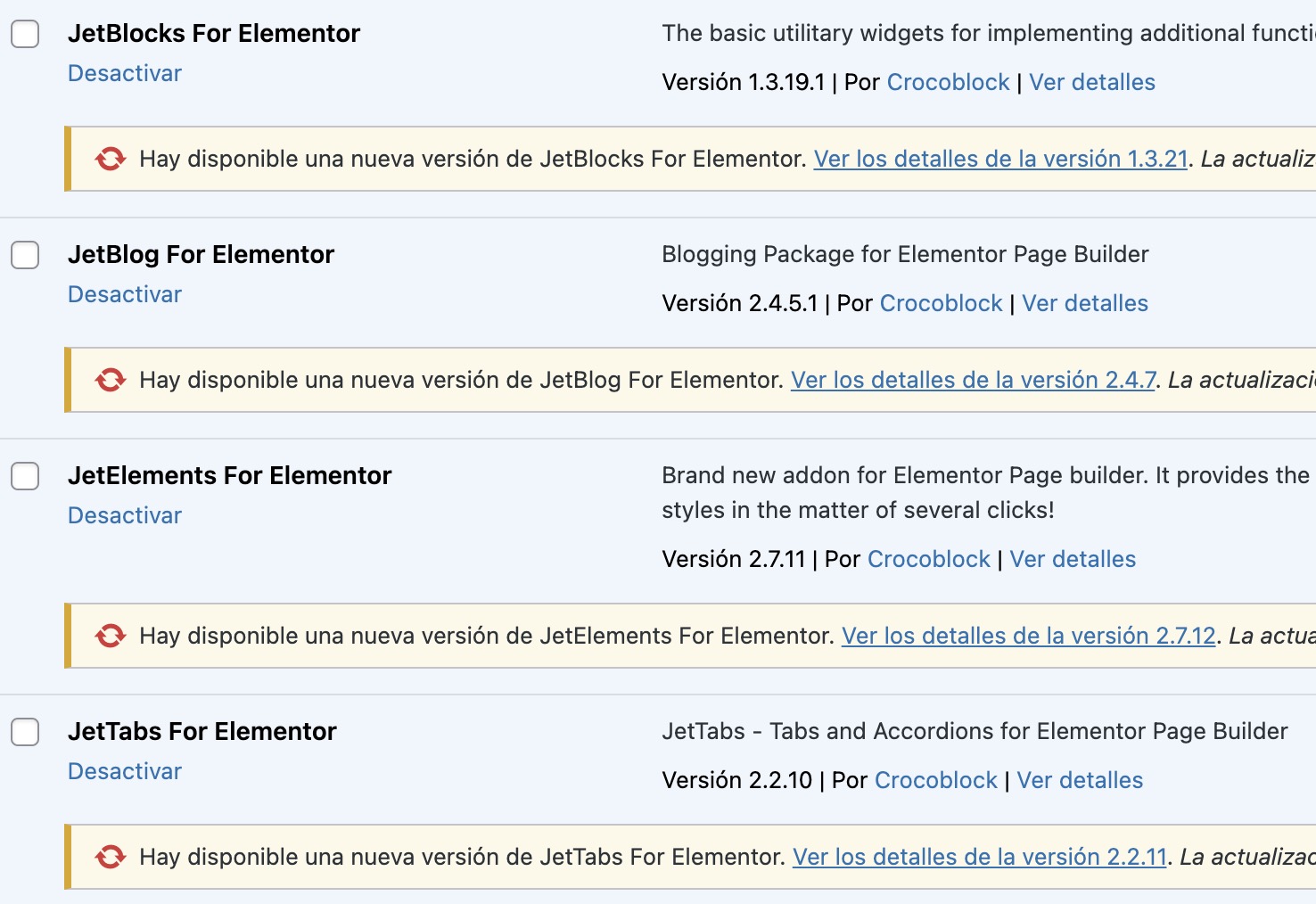Hola chicos se podrn actualizar estos complementos, hay algunos que la ultima fue en Julio, muchas gracias !!