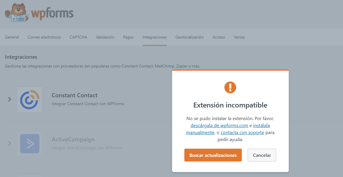 Al descargar al addons wpforms-activecampaign no puedo instalarlo y por ende no puedo integrar wpforms con activecampaign.
