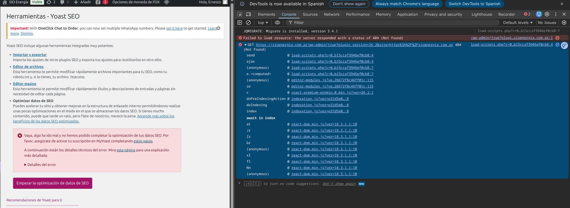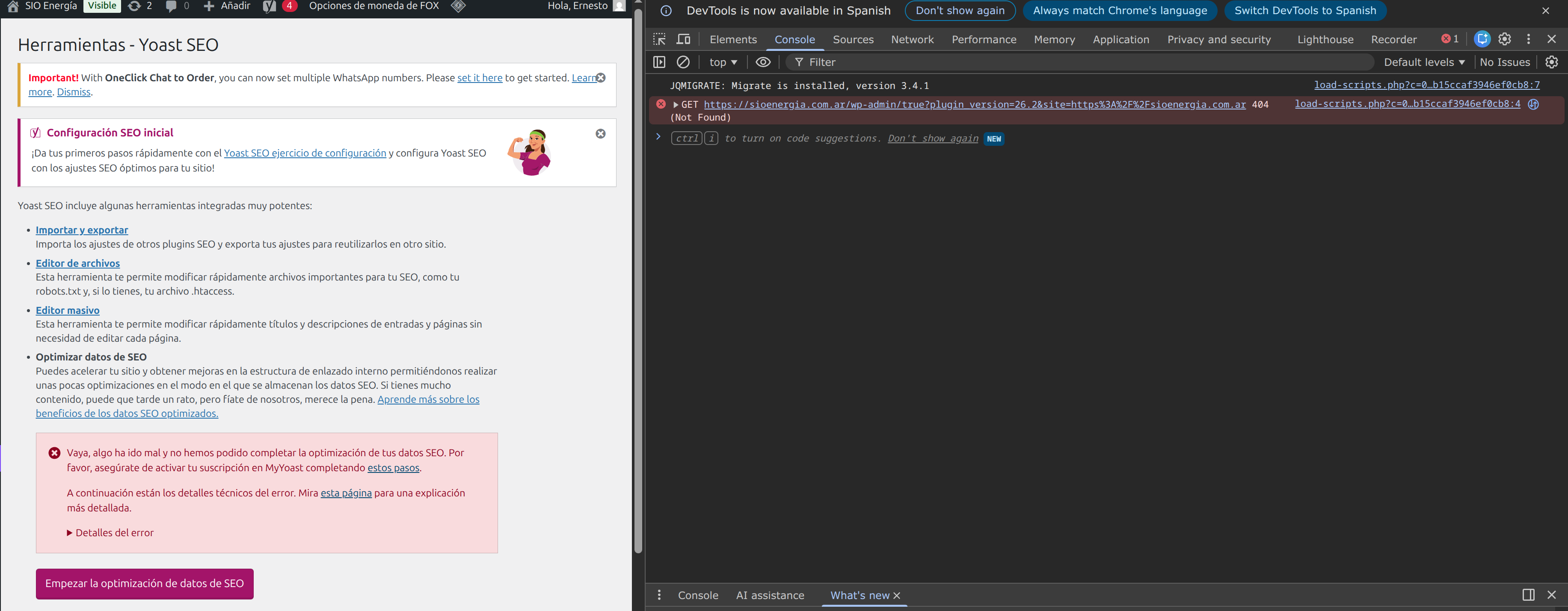 Tengo problemas con la optimización de datos de Yoast SEO Premium Versión 26.0, y algunas versiones anteriores, realice varias pruebas, desactive totalmente Wordfence, con Yoast Test Helper, (Restablecer Tablas de indexables y migraciones) sin resultado.