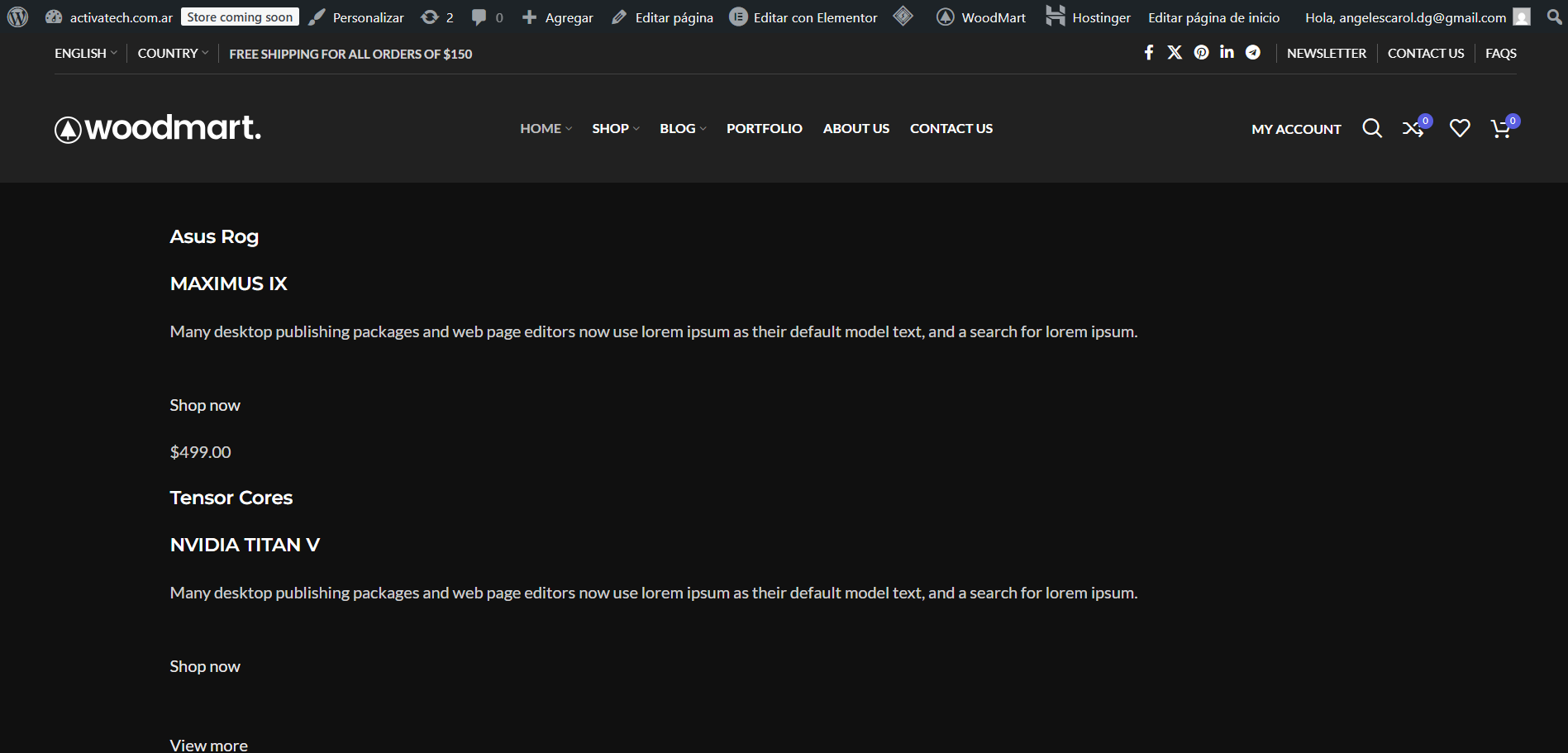 Hola chicos, perdón no soy experta, pero compré woodmart y lo instalé. Previamente elementor y elementor pro (de uds) y elijo la plantilla que quiero usar para la tienda y se ve así como la imagen que adjuntaré.